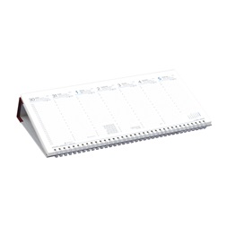 Műbőr táblával készült, fehér tömbös, fekvő asztali naptár, perforált jegyzettömbbel. 54 lap, heti beosztás, összesítő éves naptár (aktuális+következő), teljes szombat, vasárnap. Vak- vagy présfólianyomással emblémázható a tábla gerincén (reklámfelület: 330x50 mm). Méret: 325x155 mm